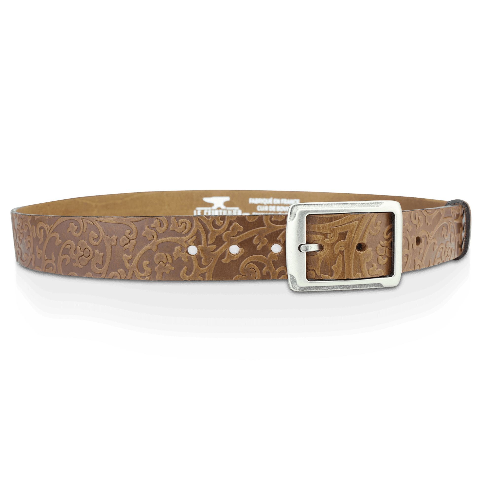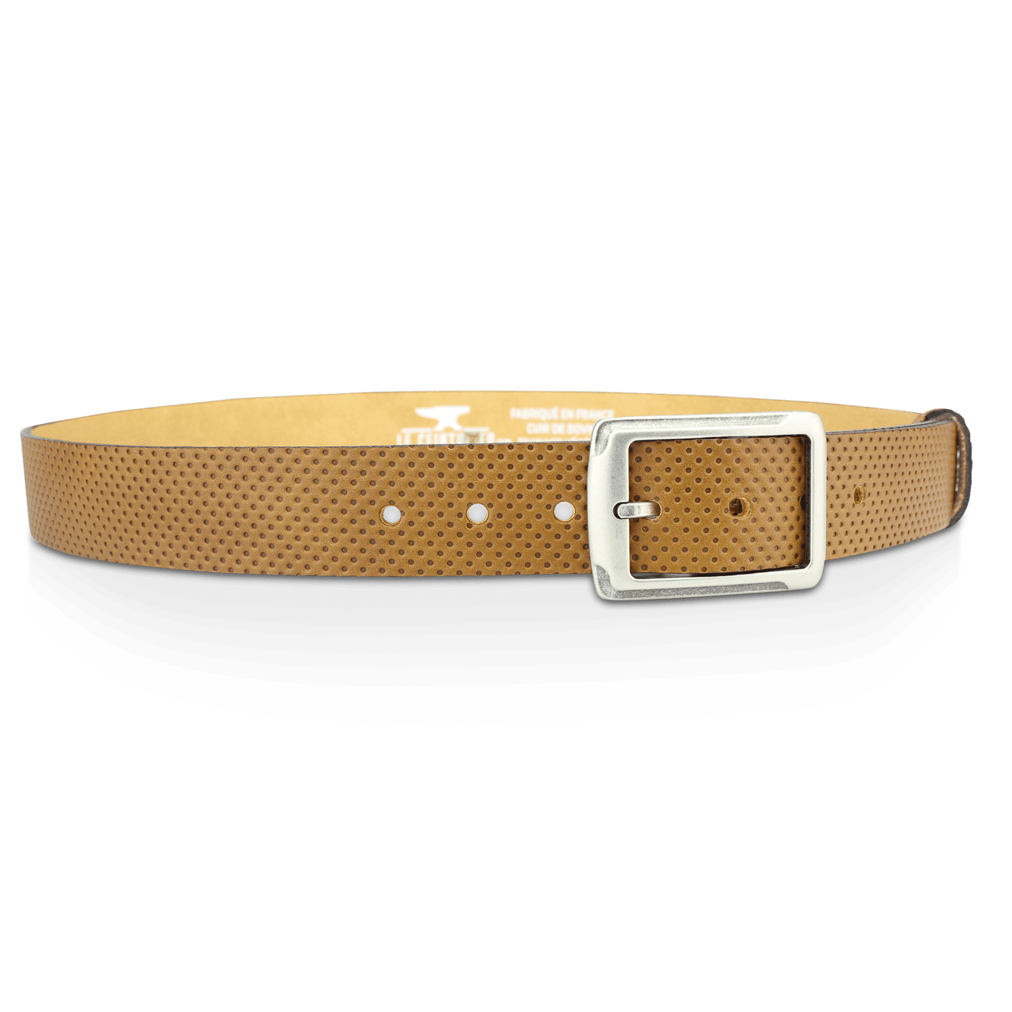 From skins tanned and pigmented by our partner tanneries specializing in vegetable tanning (all the processes of which we control and master: colors, strength, touch, etc.), all the manufacturing stages of LE CEINTURIER products are Made in France.
