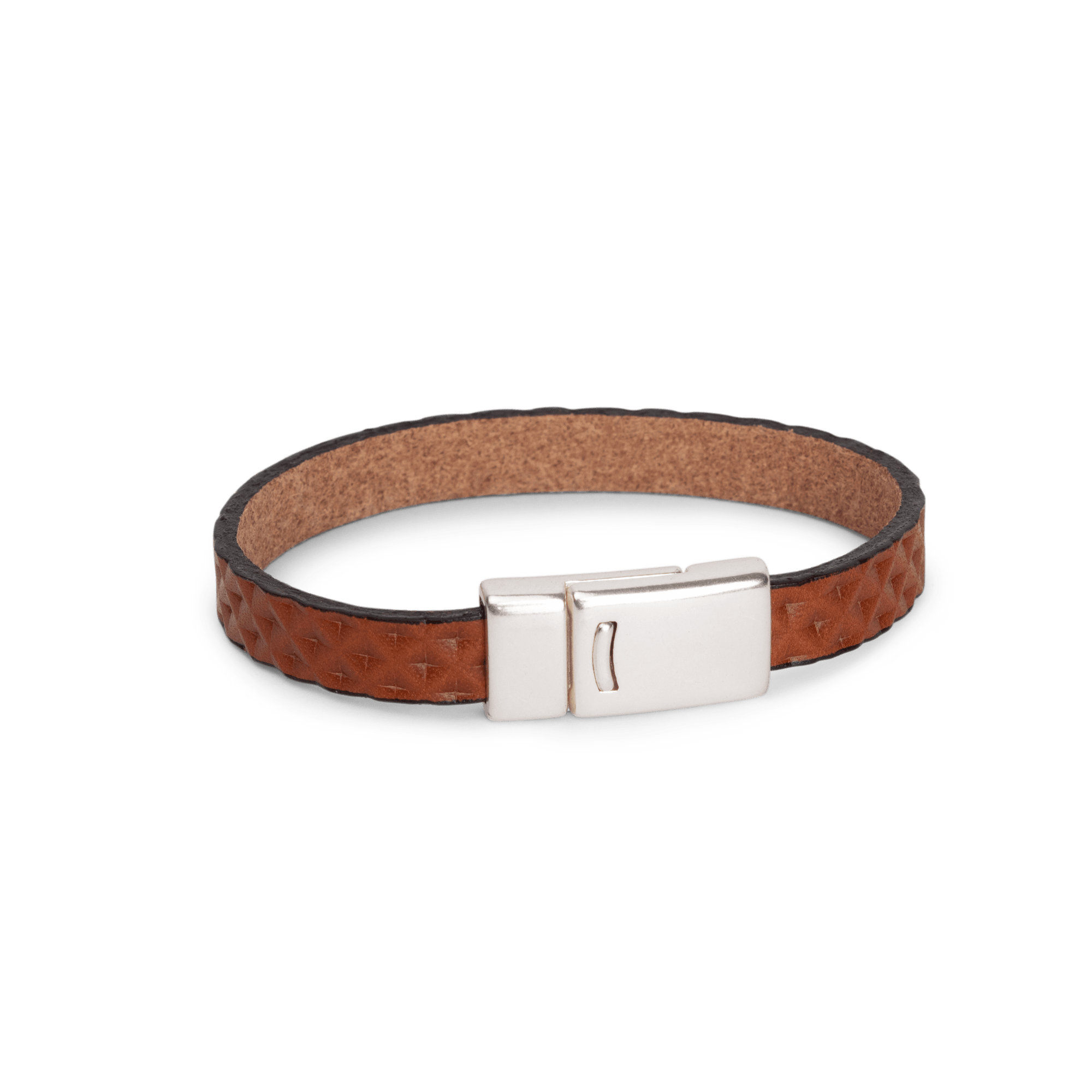 • Silver ZAMAK clasp set with leather strap