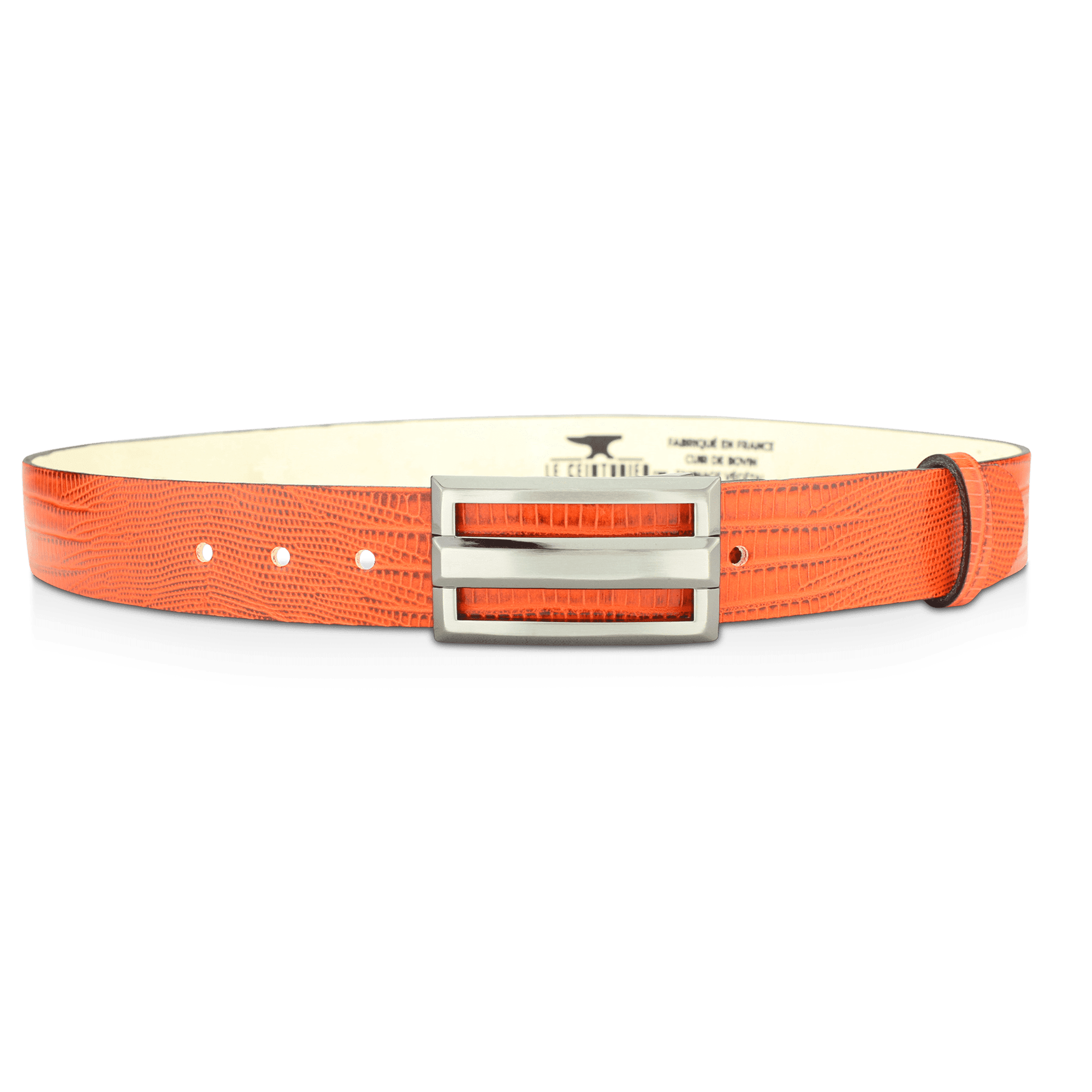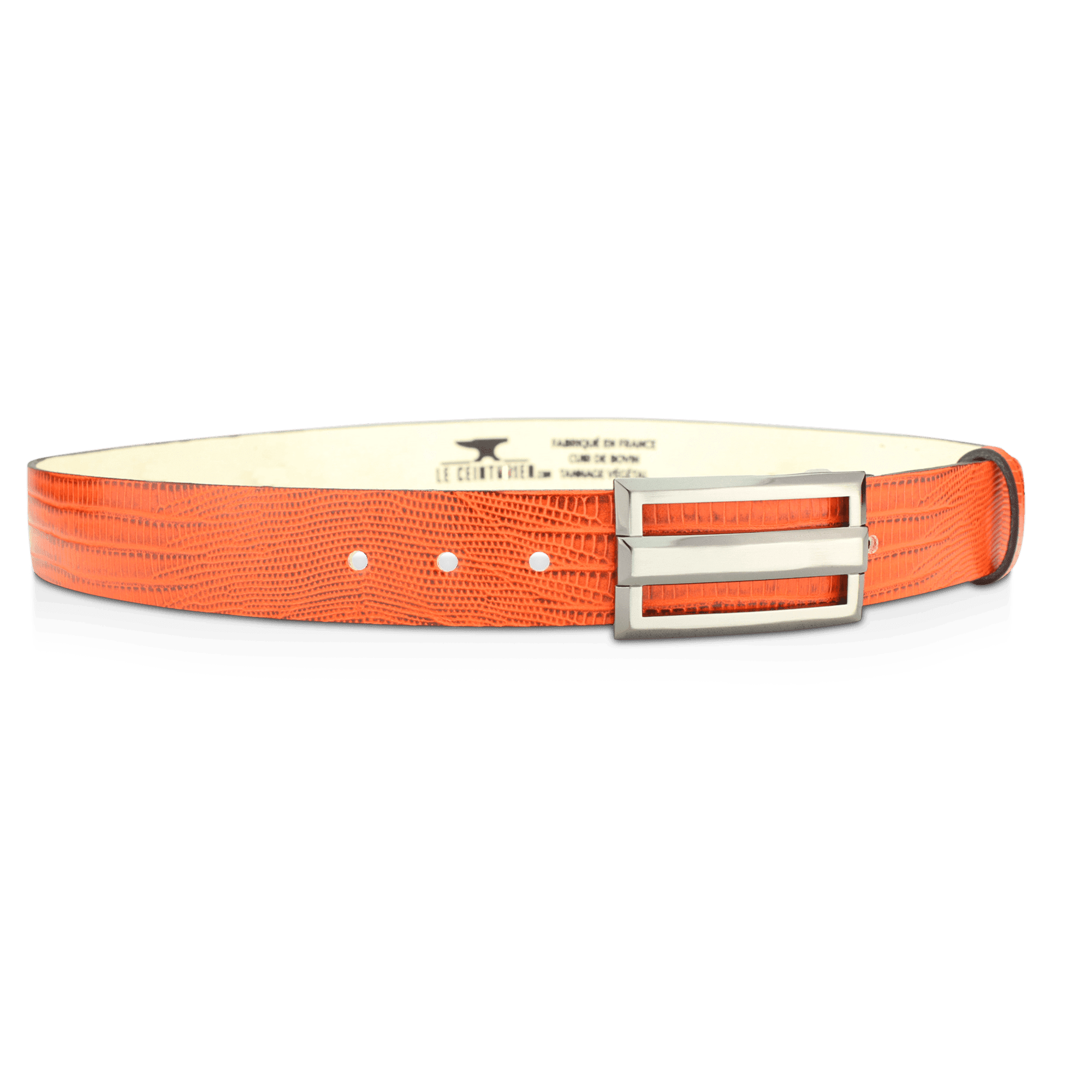 From skins tanned and pigmented by our partner tanneries specializing in vegetable tanning (all the processes of which we control and master: colors, strength, touch, etc.), all the manufacturing stages of LE CEINTURIER products are Made in France.