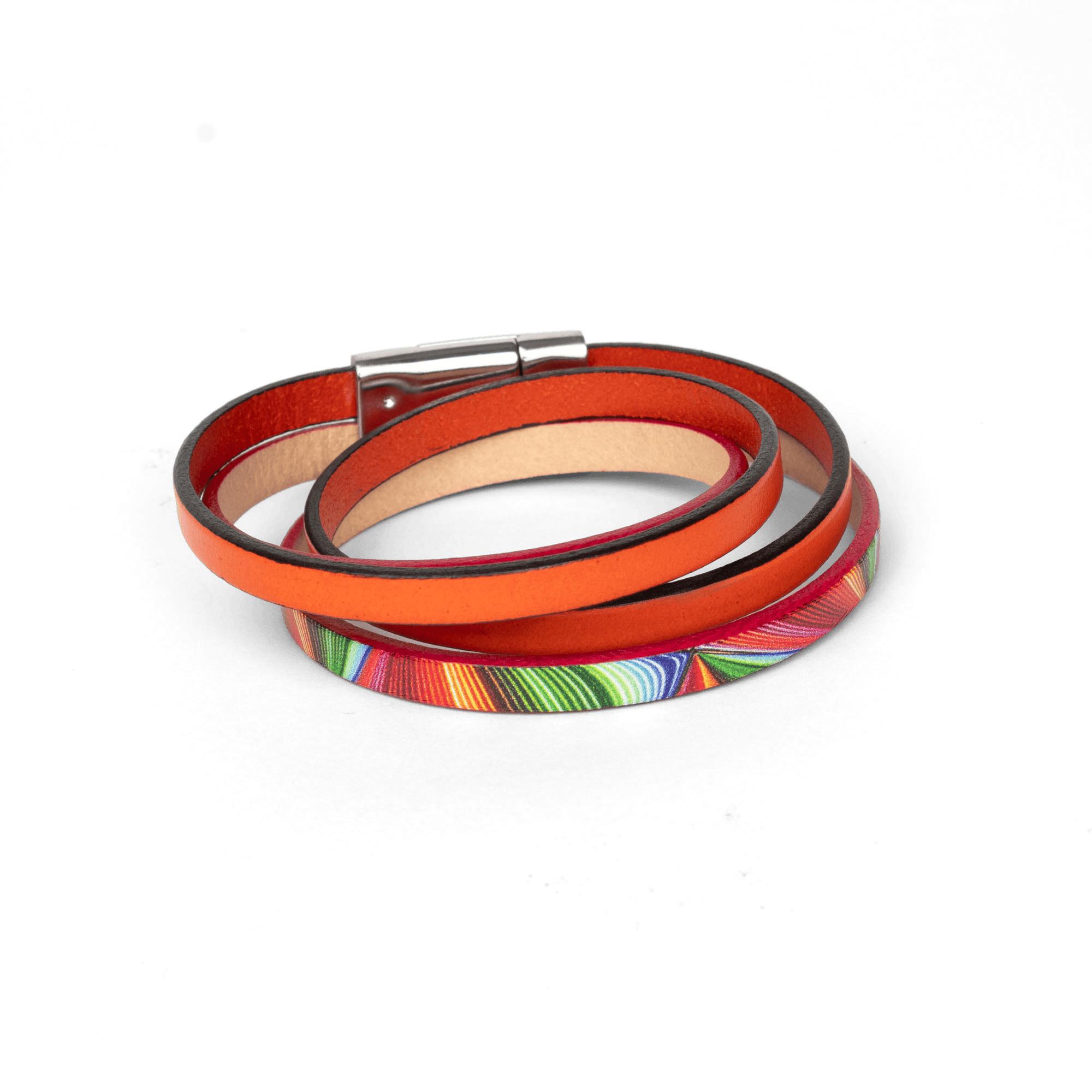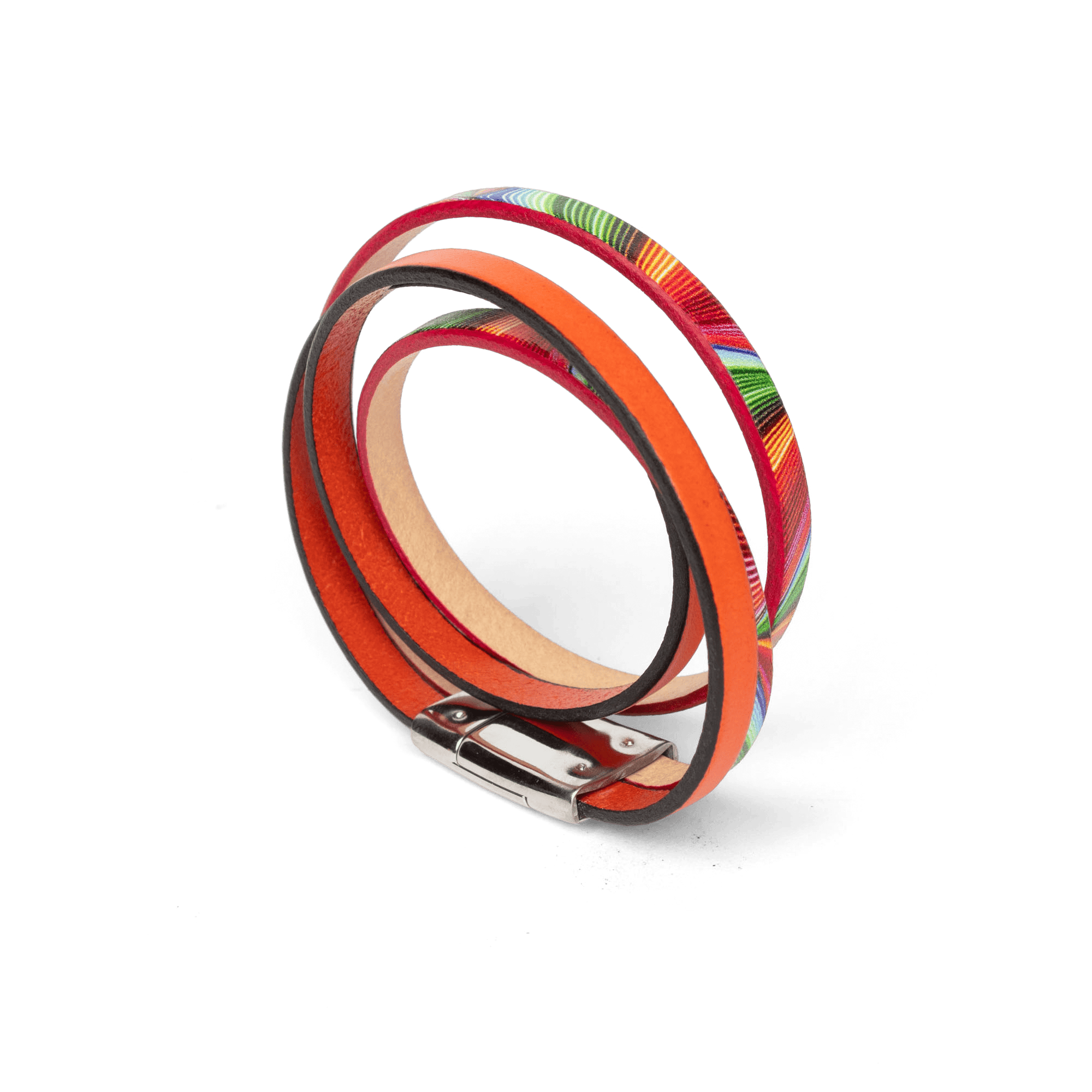 • Double-wrapped bracelet with two colored leather