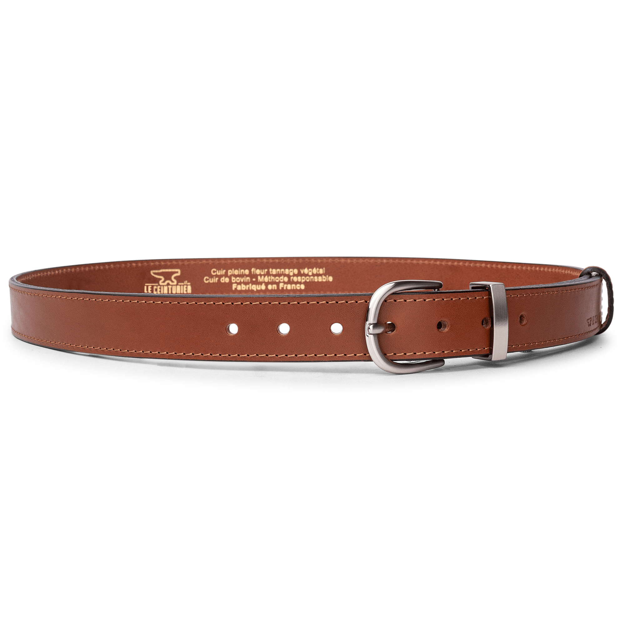From skins tanned and pigmented by our partner tanneries specializing in vegetable tanning (all the processes of which we control and master: colors, strength, touch, etc.), all the manufacturing stages of LE CEINTURIER products are Made in France.