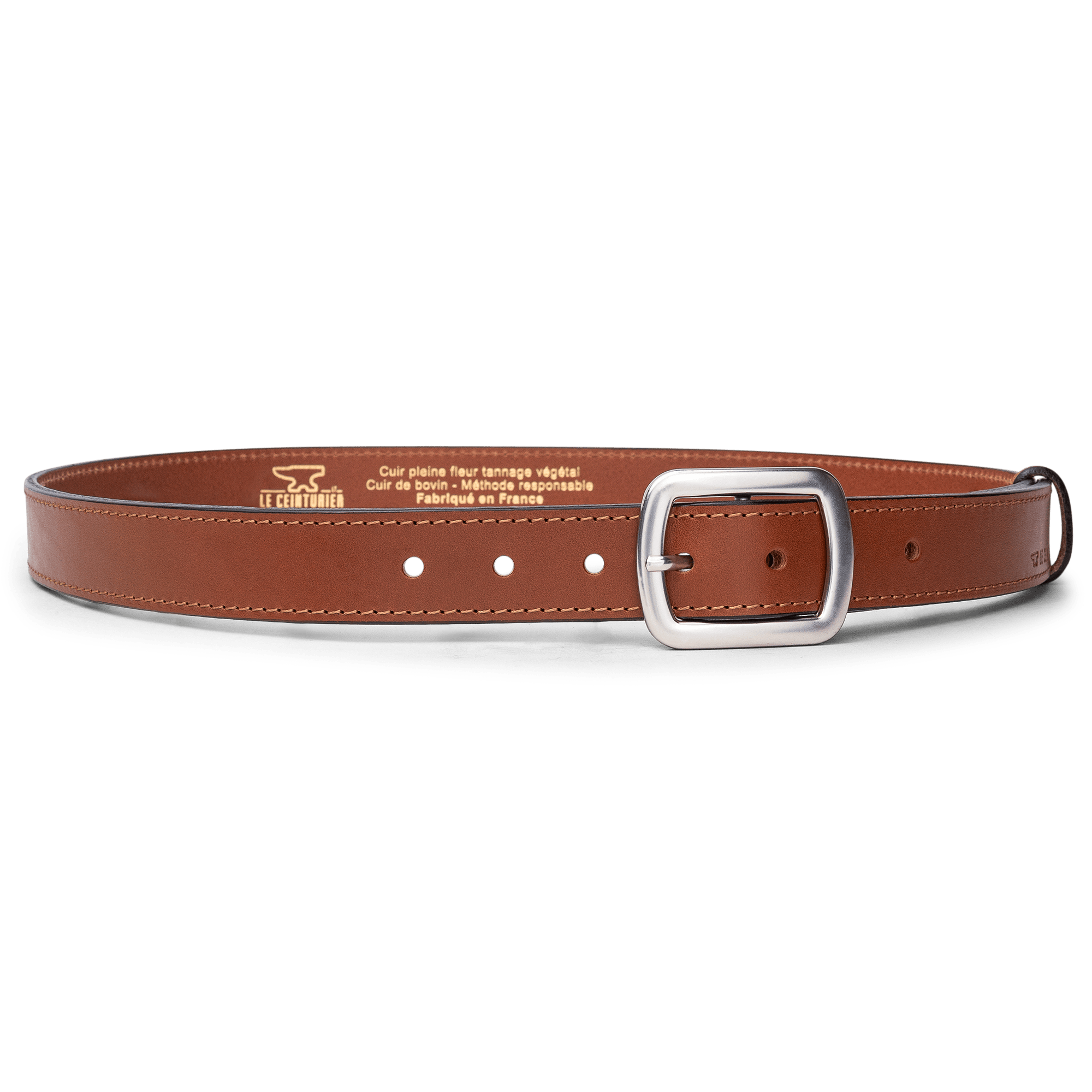 From skins tanned and pigmented by our partner tanneries specializing in vegetable tanning (all the processes of which we control and master: colors, strength, touch, etc.), all the manufacturing stages of LE CEINTURIER products are Made in France.