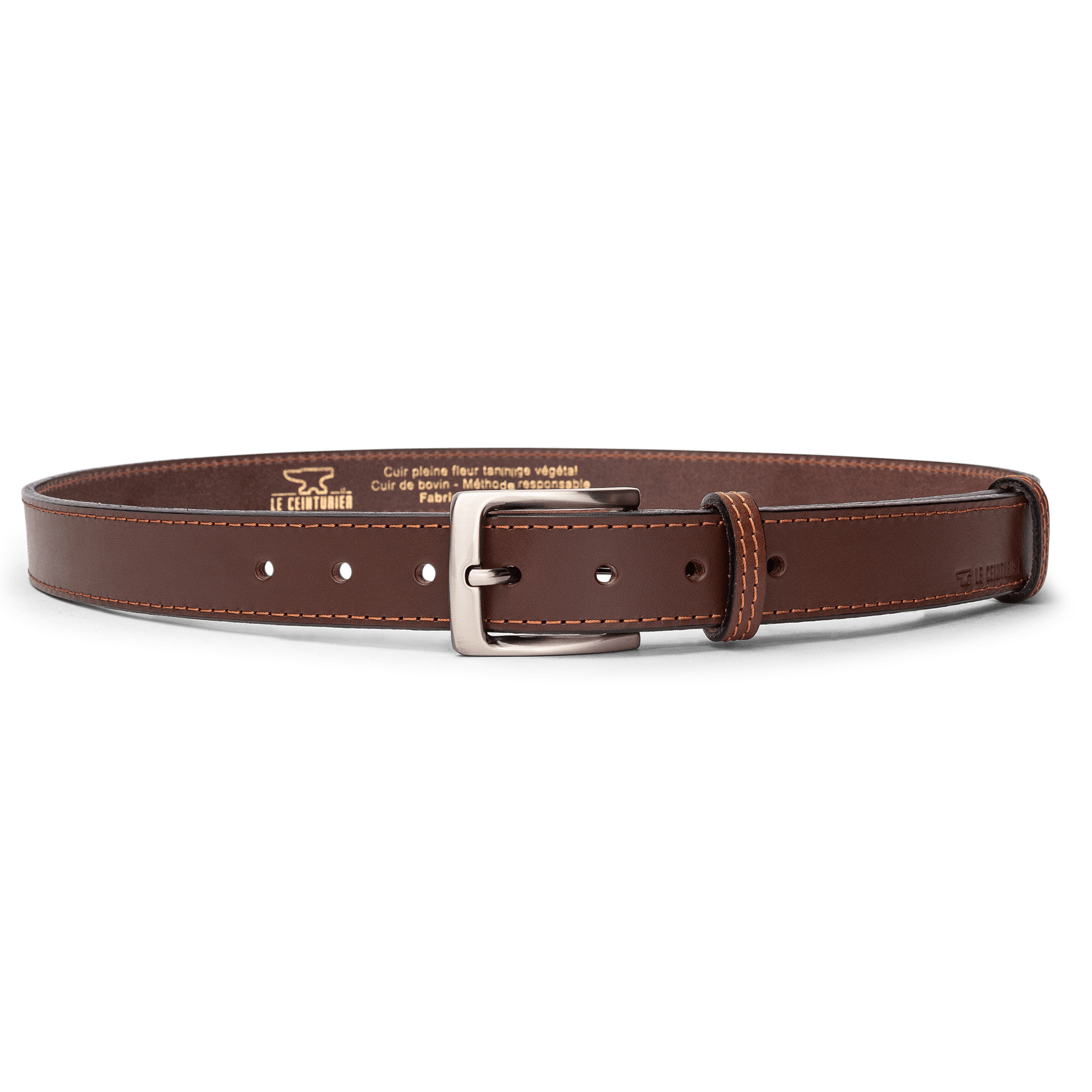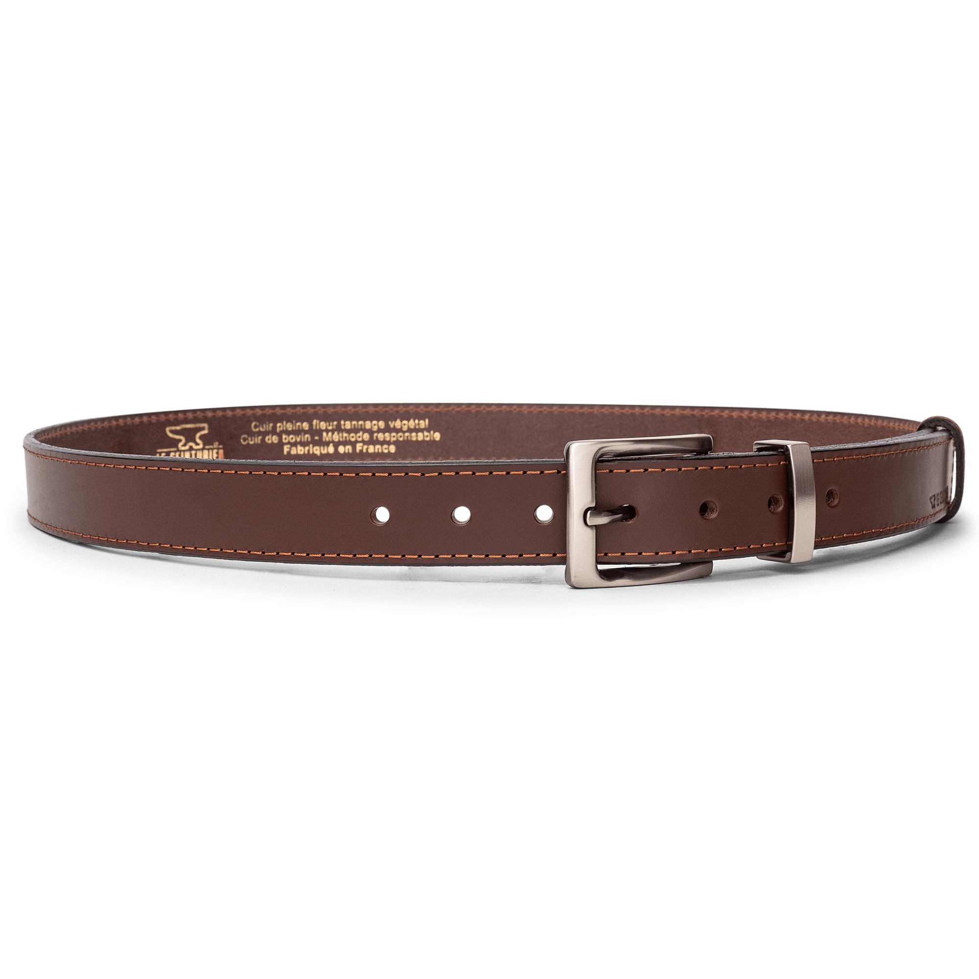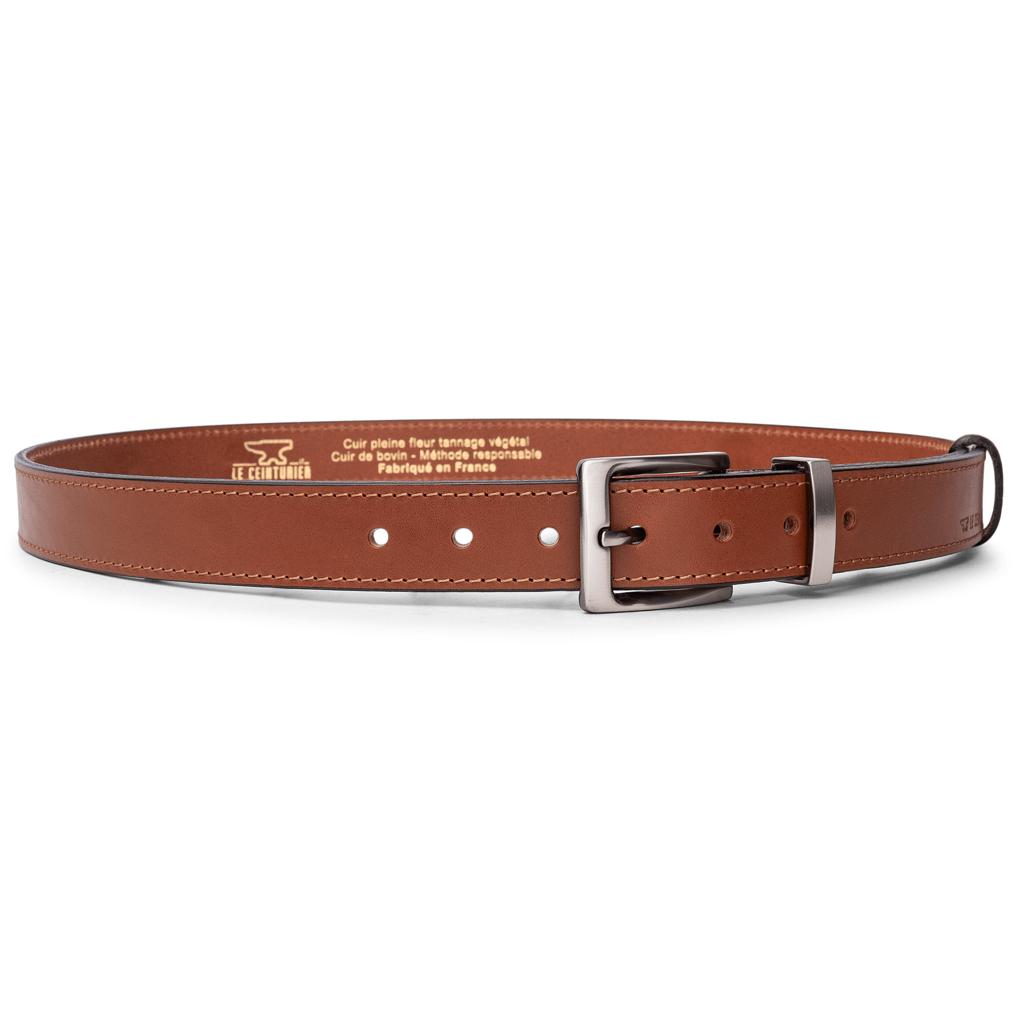 From skins tanned and pigmented by our partner tanneries specializing in vegetable tanning (all the processes of which we control and master: colors, strength, touch, etc.), all the manufacturing stages of LE CEINTURIER products are Made in France.