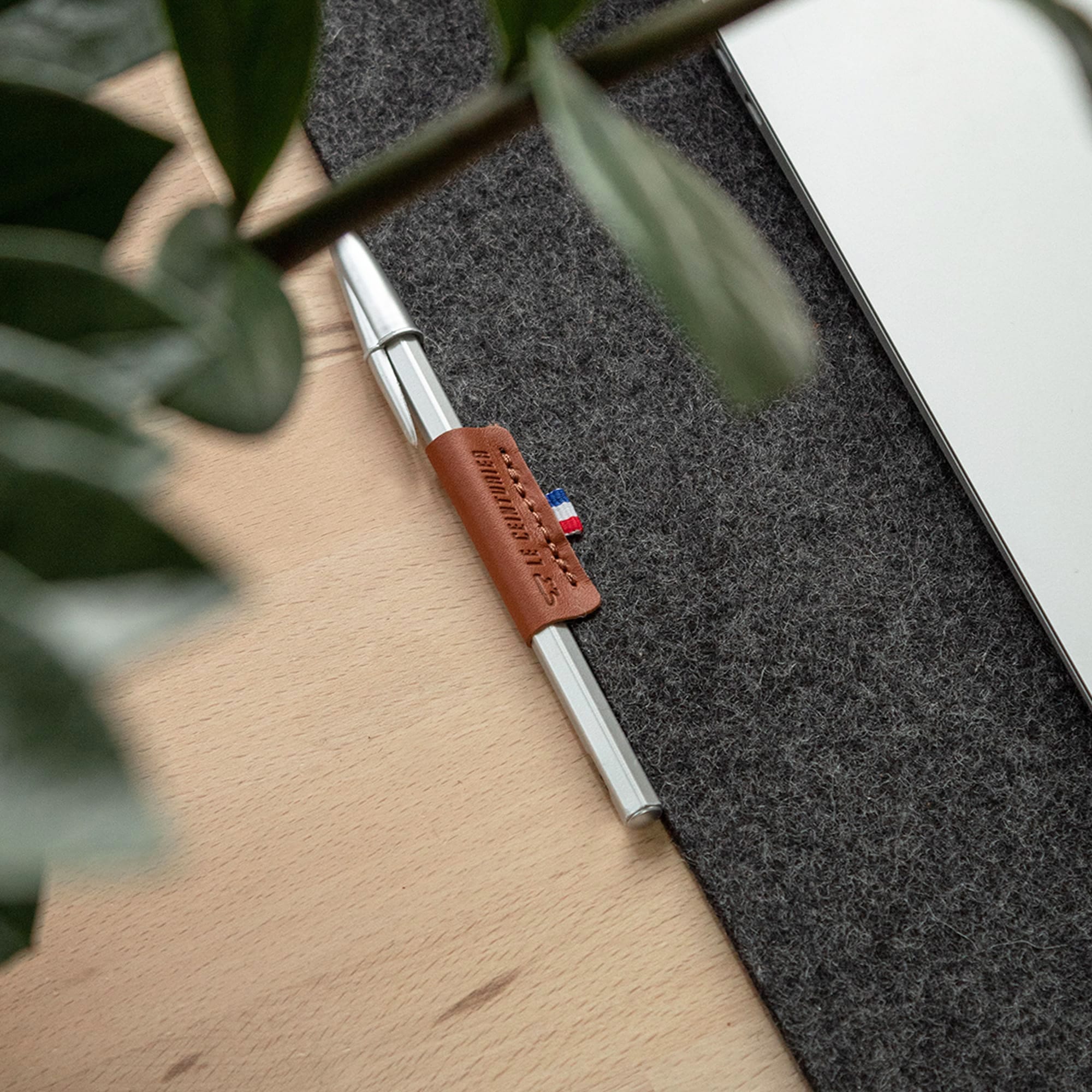 • Étiquette en cuir porte stylo ou crayon