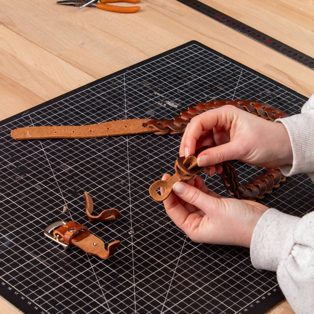 Je fais glisser l'enchapure puis je retire ou j'ajoute le nombre de maillons en fonction de mon besoin.