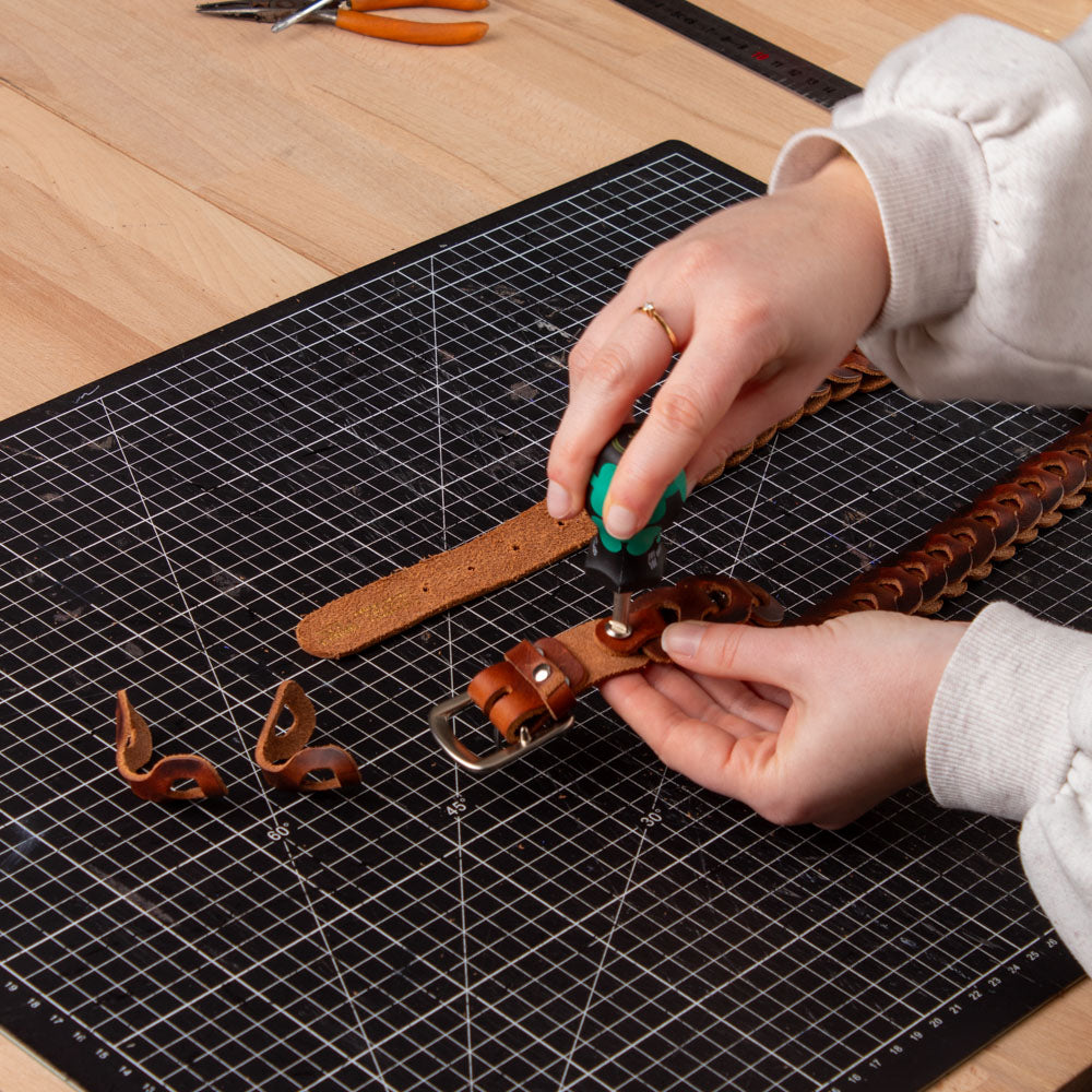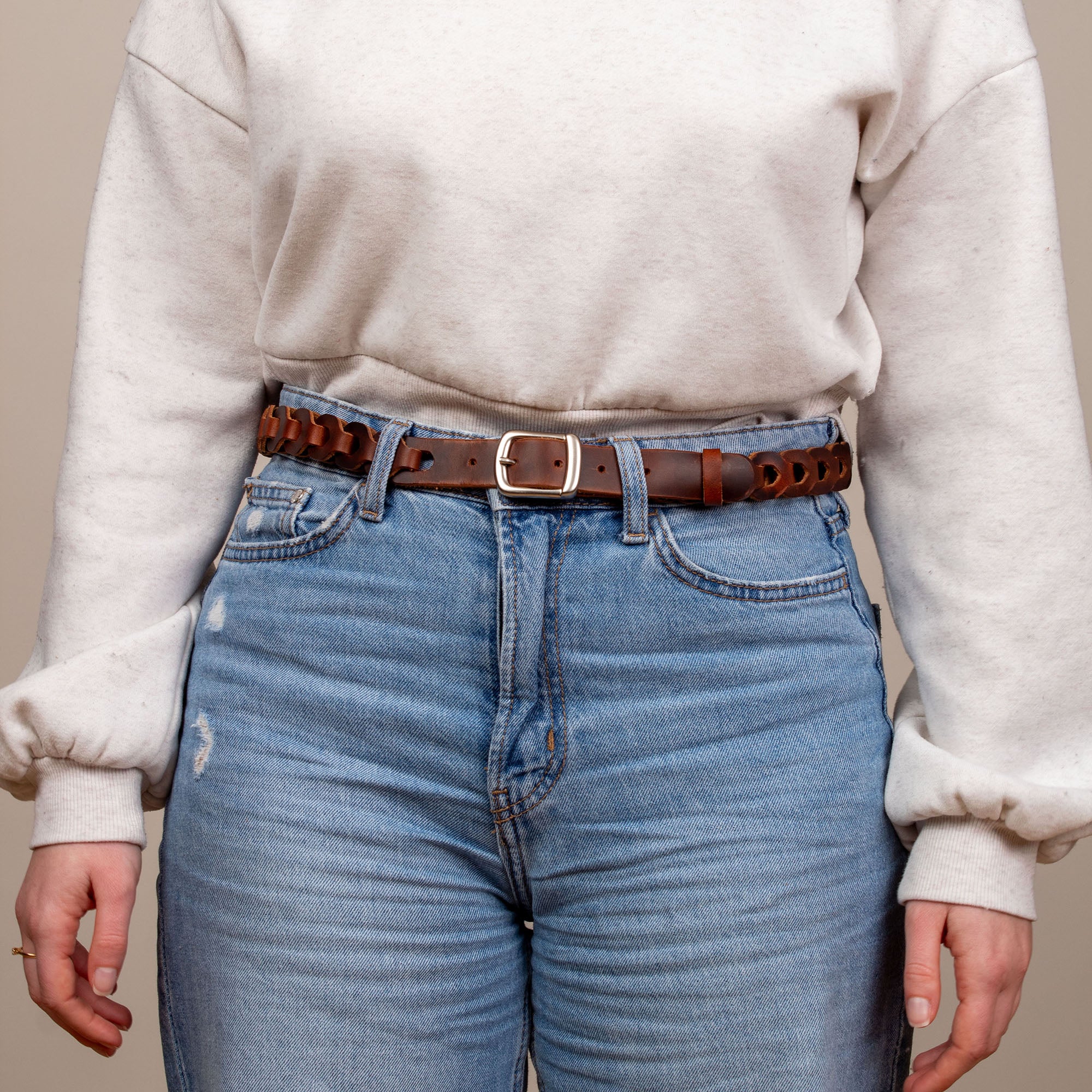 Une ceinture en cuir ajustée à la bonne taille.