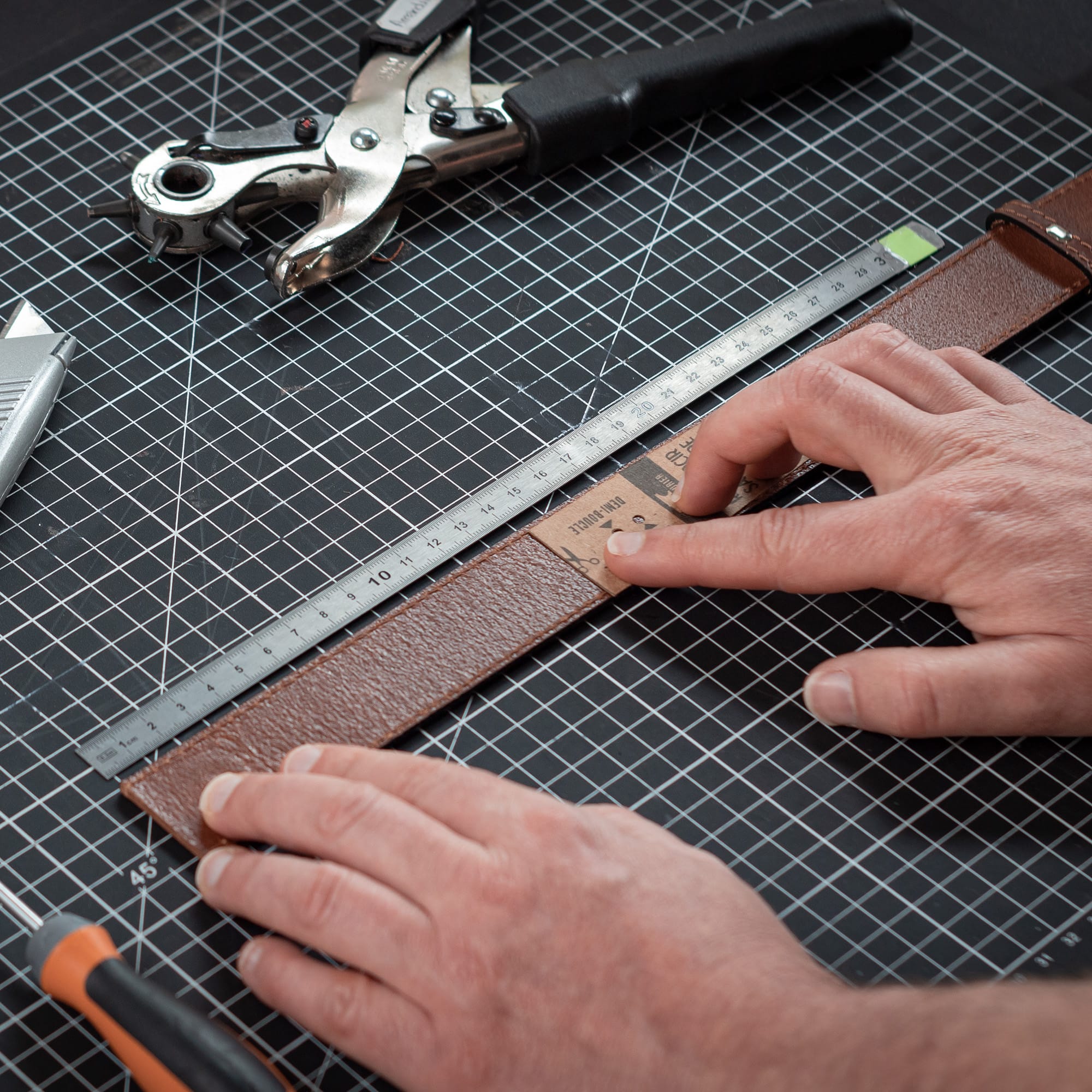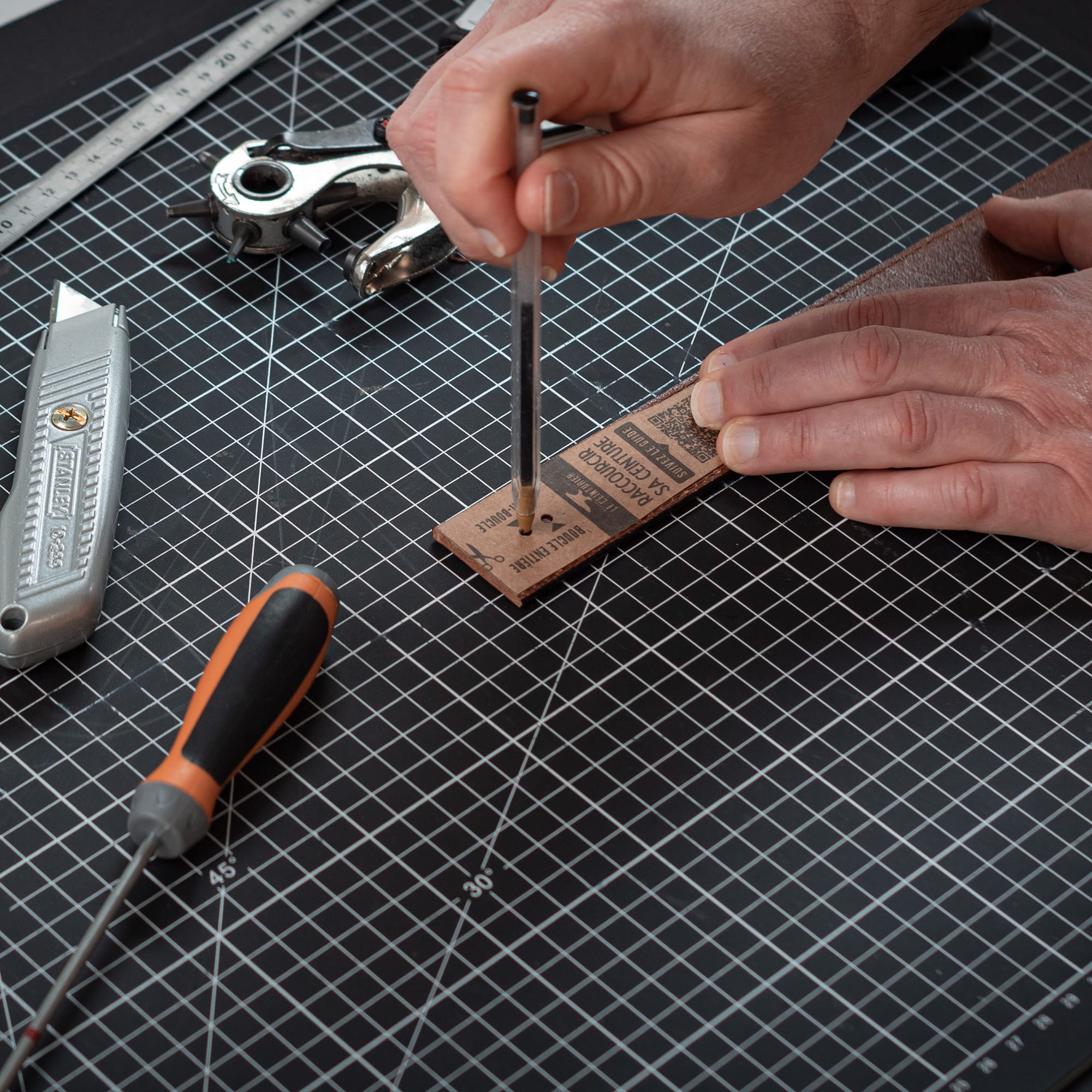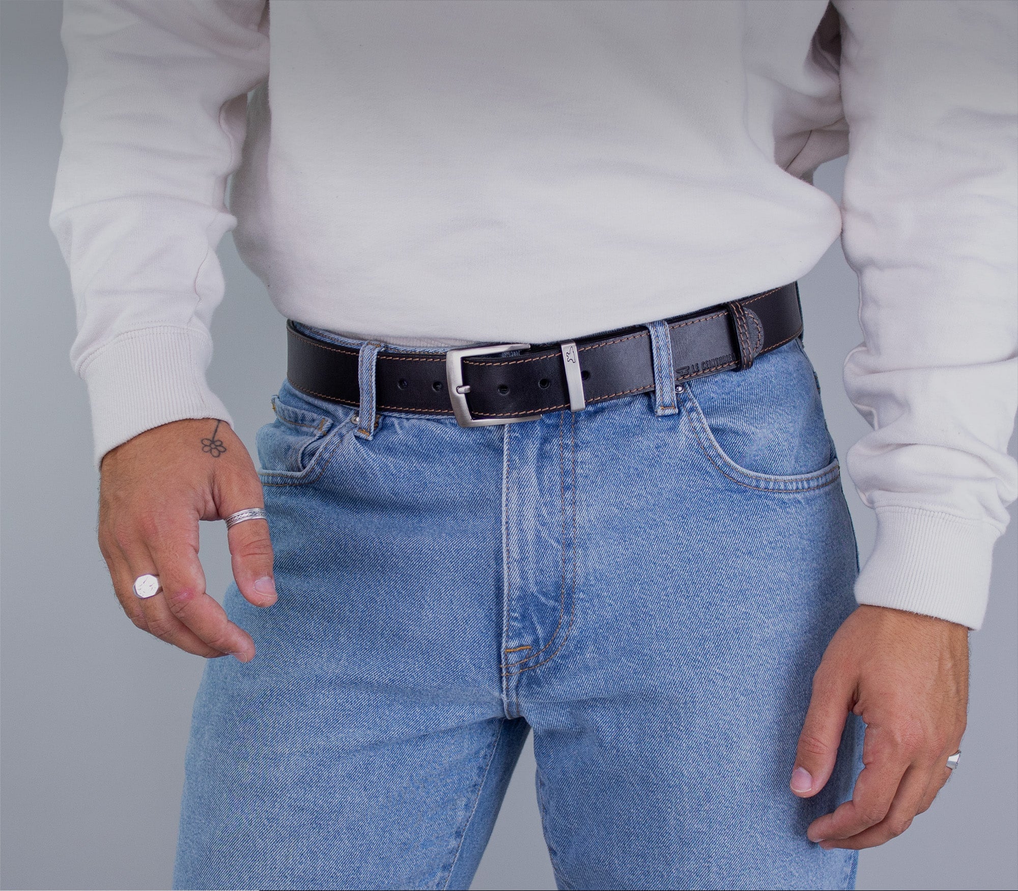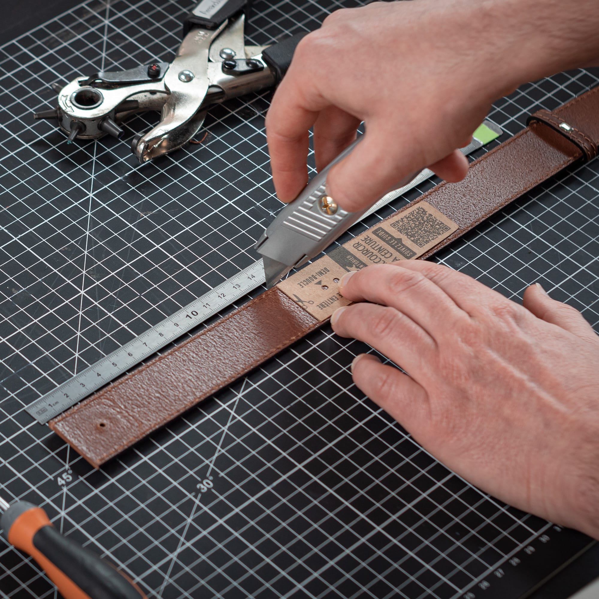 1. Je mesure de l'extrémité de la boucle jusqu’au trou central de ma ceinture afin de déterminer de combien la raccourcir.