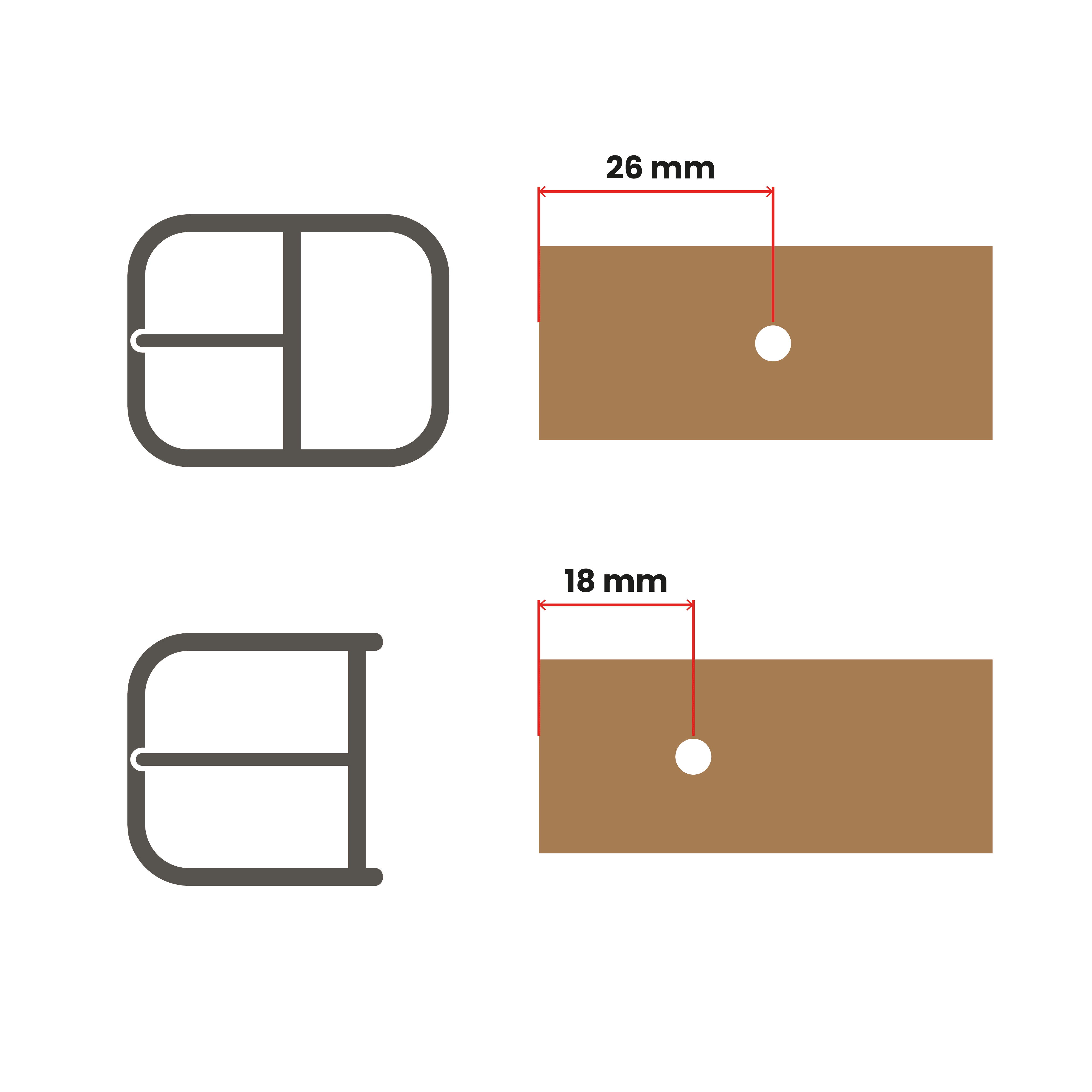 5. Je veille à bien choisir le trou correspondant à son type de boucle (Boucle entière ou boucle avec passant)