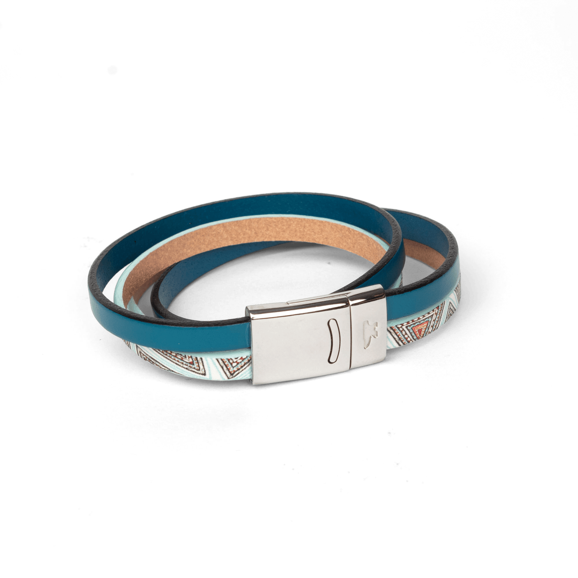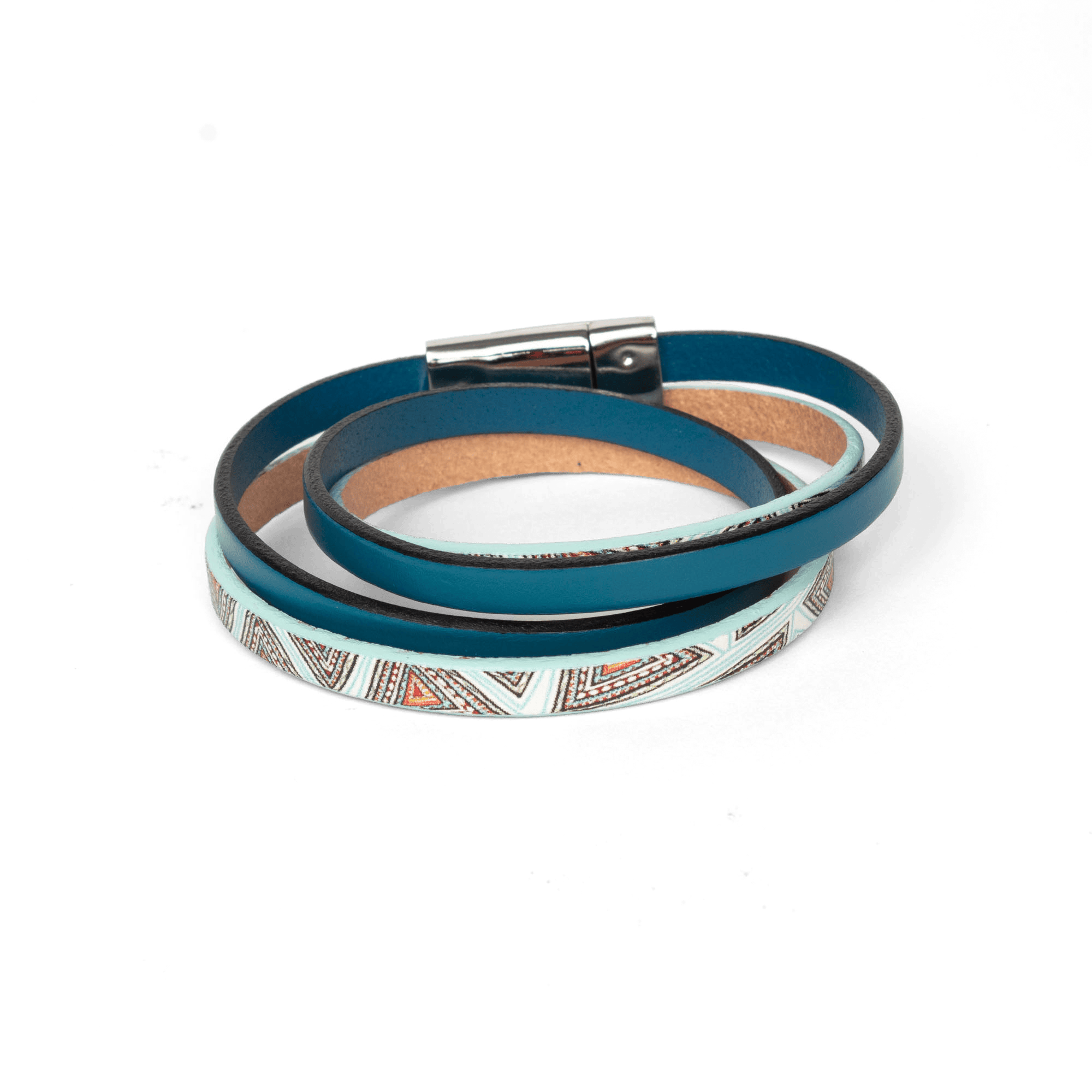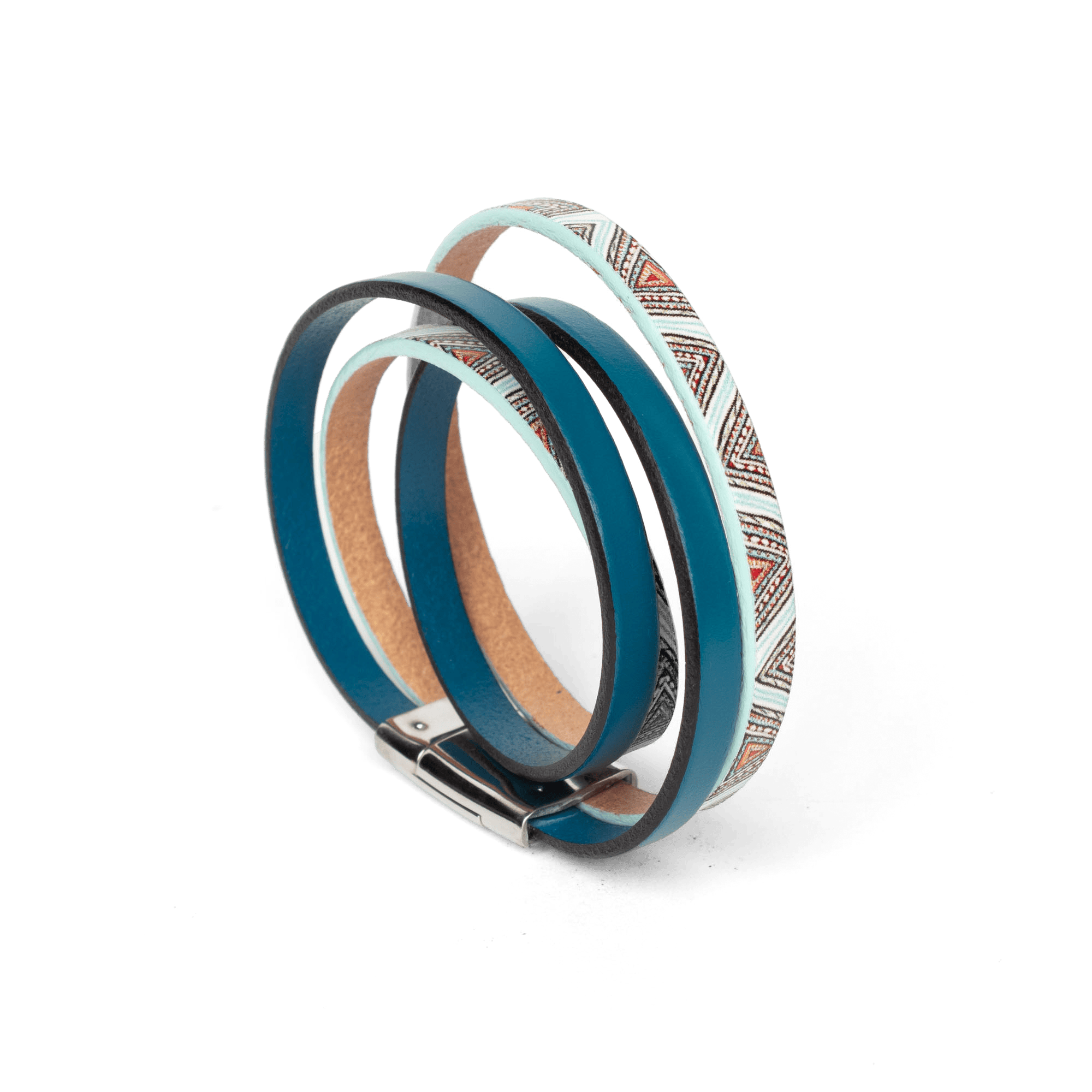 • Bracelet avec deux tours de cuir coloré
