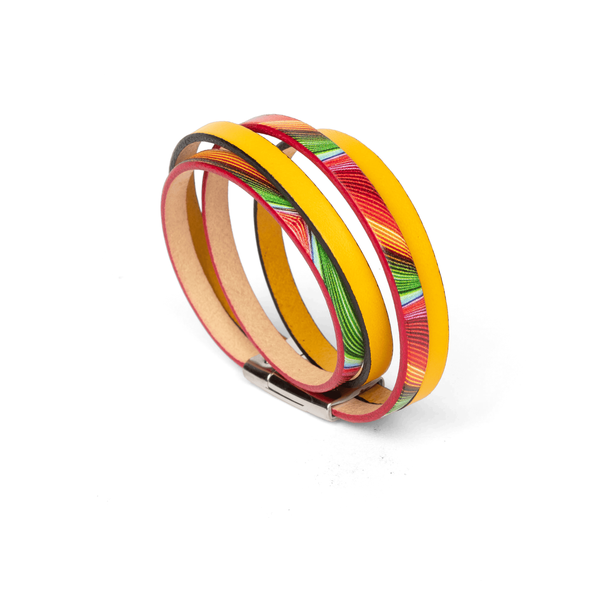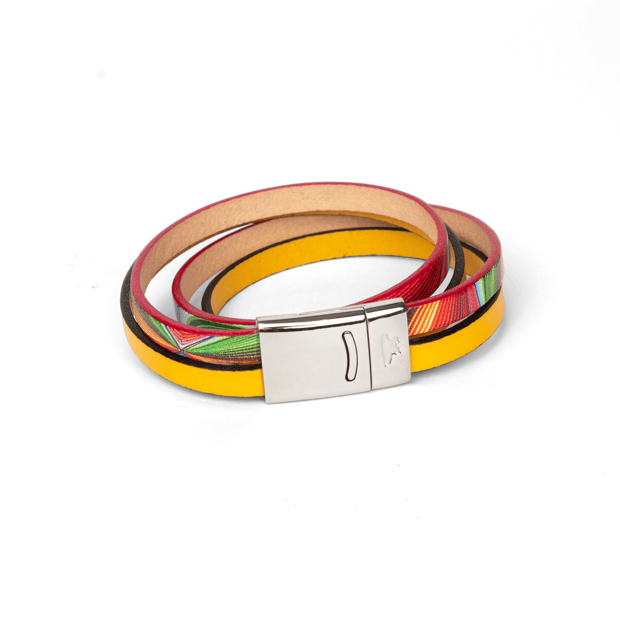 • Bracelet avec deux tours de cuir coloré