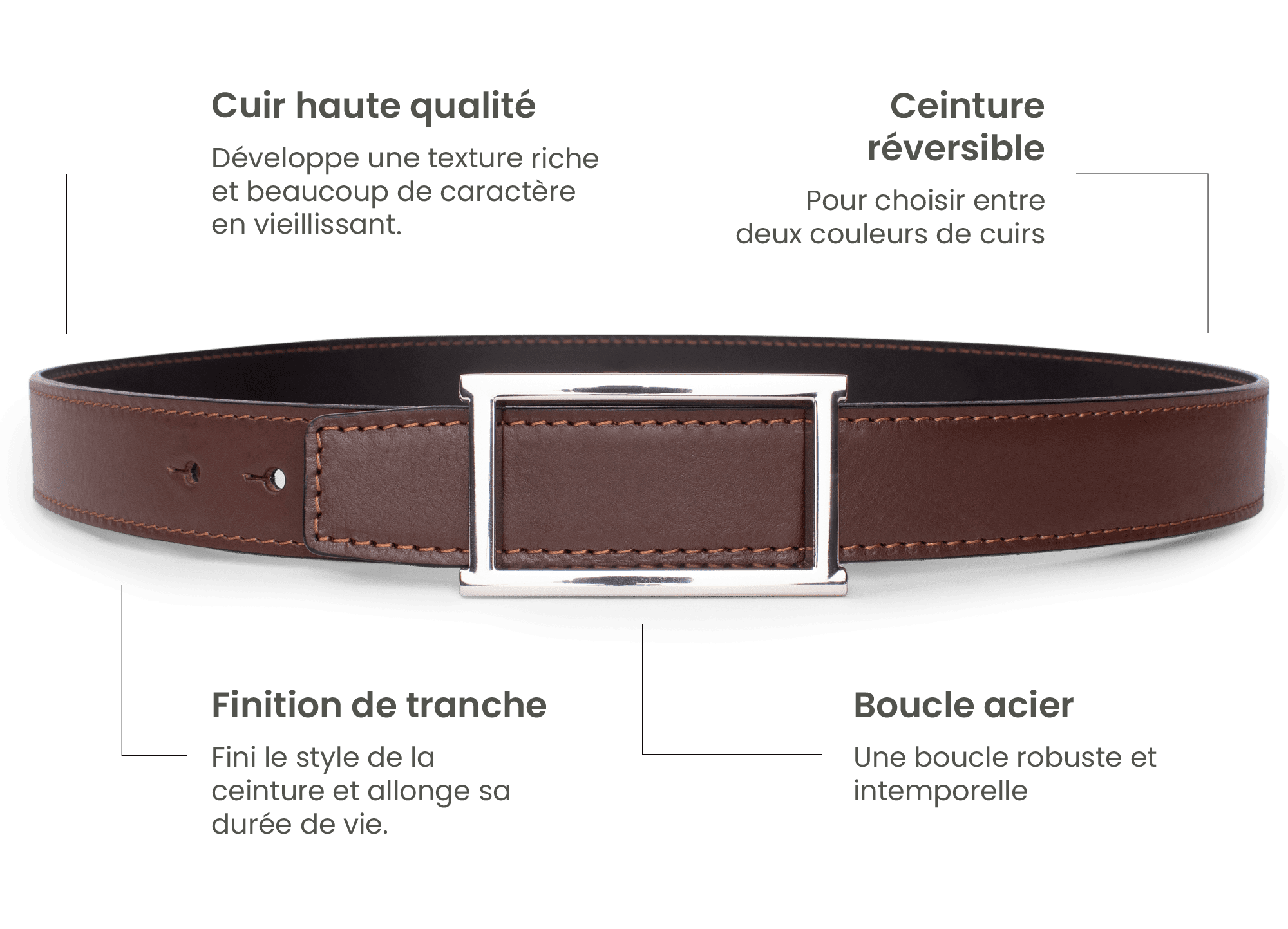 Largeur : 32 mm• Ceinture entièrement cousue par esthétisme et solidité
